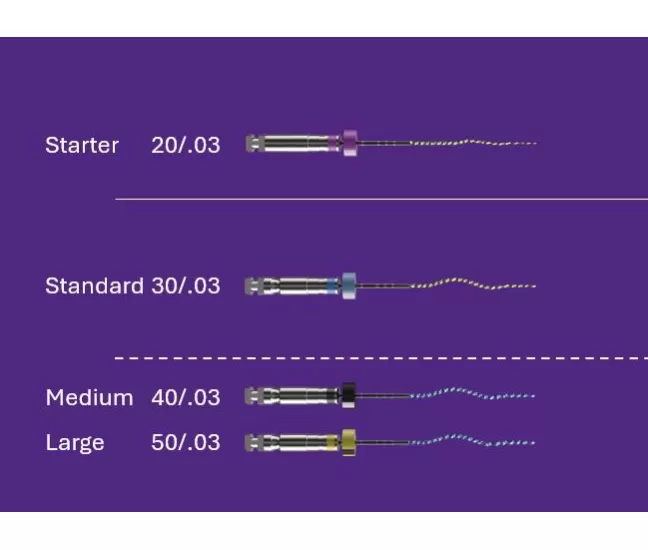 Этот многоступенчатый метод обработки, который можно определить по характерному цвету рабочей части инструмента, является реакцией производителя на сложность лечения корневых каналов — он гарантирует, что каждый инструмент адаптируется к анатомическим трудностям при эффективном выполнении на протяжении всей эндодонтической процедуры.