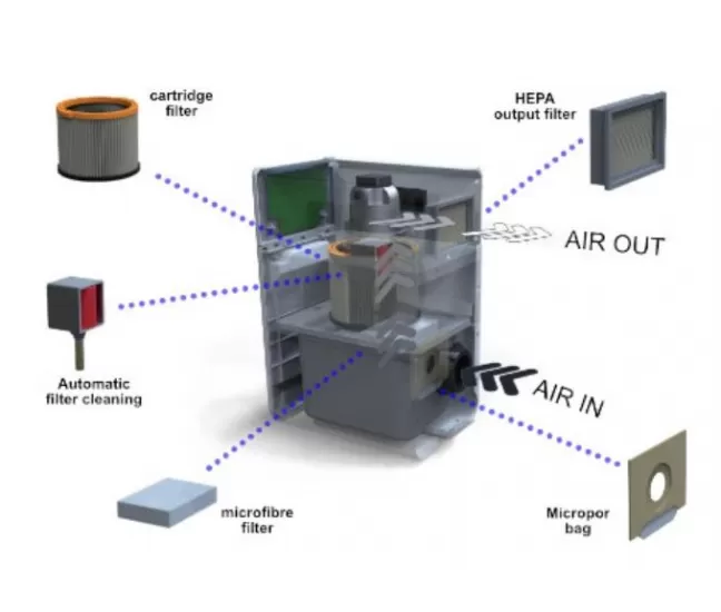 Автоматическая тяговая система AS-1A, подходящая для всего лабораторного оборудования.Трехступенчатая система фильтрации: микрофибровый пакет, картриджный фильтр класса M и HEPA-фильтр.