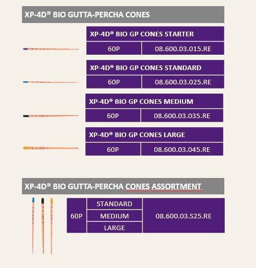 Все штифты XP-4D Bio гуттаперчи состоят из 3% конуса.