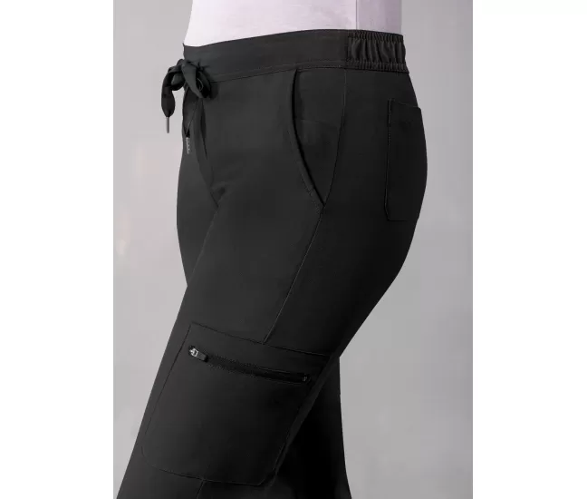 8 карманов: 2 глубоких с обеих сторон, 1 маленький внутренний карман на левой ноге, 1 большой карман справа вместе с карманом для ножниц, один большой карман на молнии слева, 2 задних кармана;