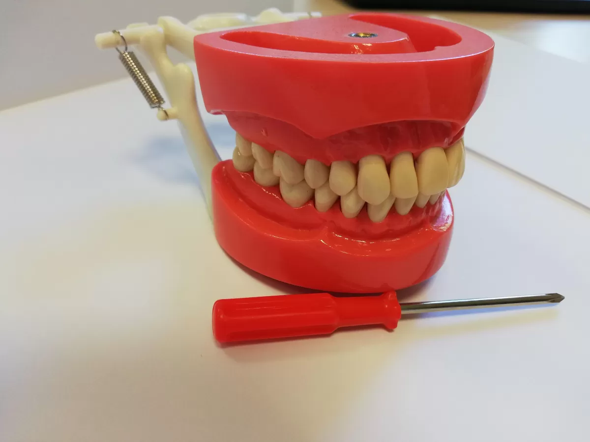 Studentu izglītības zobārstniecības modelisZobi ir viegli nomaināmi (atskrūvējami un ieskrūvējami ar skrūvēm).